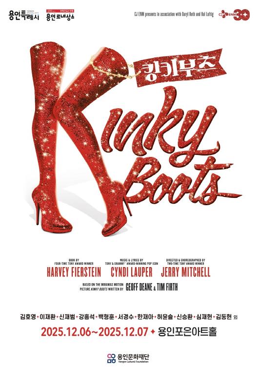 [뉴스다컴] 용인문화재단은 오는 12월 6일부터 7일까지 용인포은아트홀에서 뮤지컬 ‘킹키부츠’를 선보인다. 이번 공연은 양일간 오후 2시와 7시, 총 4회 진행되며, 관람 연령은 만 8세 이상으로 미취학 아동은 입장이 불가하다.