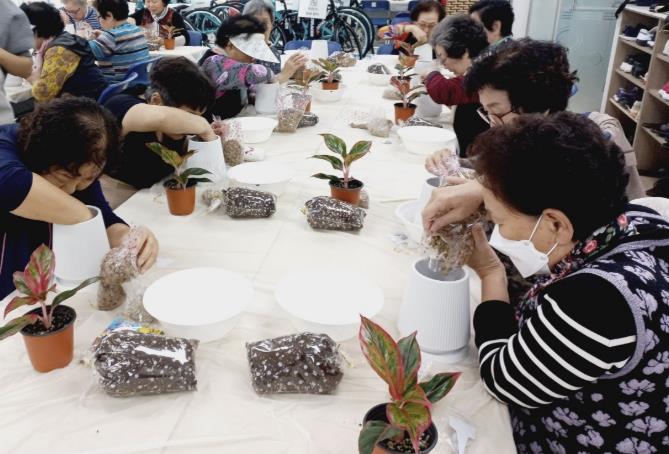 | ▲ 어르신들이 원예프로그램에 참여하고 있는 모습 |