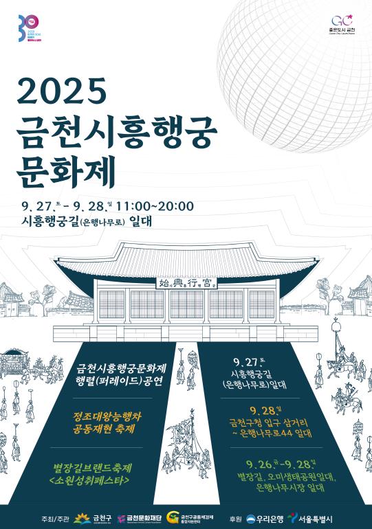 [뉴스다컴] 금천구와 금천문화재단은 27일과 28일 양일간 금천구 은행나무로 일대에서 ‘2025 금천시흥행궁문화제’를 개최한다고 밝혔다. 인근에서 하루 전날인 26일부터 지역 대표 축제인 ‘2025 별장길 브랜드 축제(부제: 소원성취페스타 소·성·페)‘도 열려 축제의 한마당이 펼쳐질 것이라고 구는 설명했다.