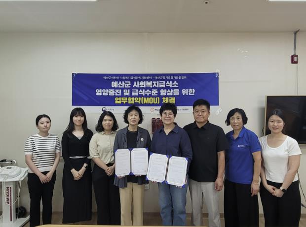 [뉴스다컴] 예산군 어린이·사회복지급식관리지원센터는 예산군 장기요양기관연합회와 관내 어르신의 건강 및 영양 증진을 위한 업무협약을 체결했다고 1일 밝혔다.