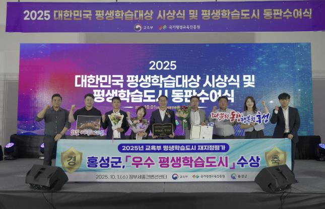 [뉴스다컴] 홍성군은 지난 1일 정부세종컨벤션센터에서 열린 ‘2025 대한민국 평생학습대상 및 평생학습도시 동판수여식’에서 교육부장관 기관표창을 수상하며, 전국 평생학습 활성화를 선도하는 도시로 위상을 높였다.