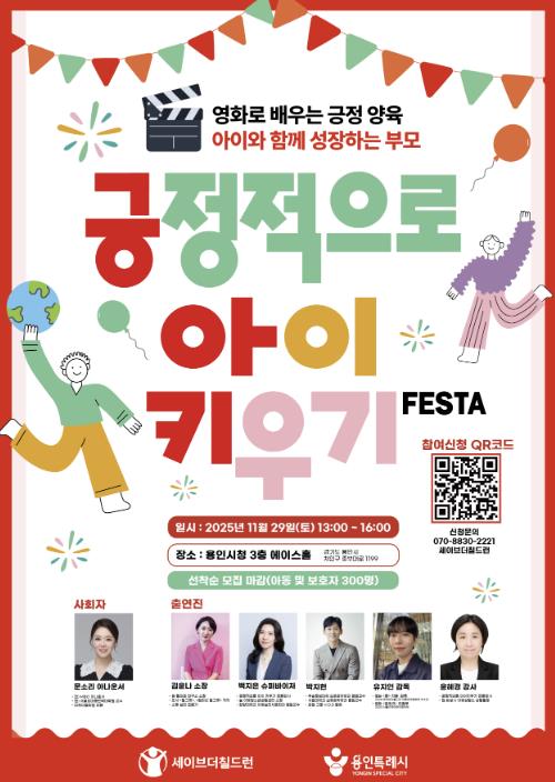 [뉴스다컴] 용인특례시는 세이브더칠드런과 ‘긍정적으로 아이키우기 페스타’를 29일 시청 에이스홀에서 개최한다고 25일 밝혔다.