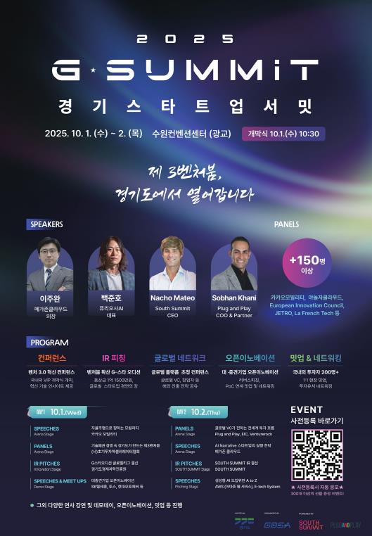 [뉴스다컴] 국내 최고 수준의 글로벌 스타트업 투자 박람회인 ‘경기 스타트업 서밋(G-SUMMIT)’이 오는 10월 1일부터 2일까지 수원컨벤션센터에서 열린다.