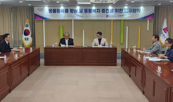[뉴스다컴] 부산시는 동물등록률 향상 및 동물복지 증진을 위해 어제(30일) 오전 10시 시청 26층 회의실에서 '㈜유니온바이오메트릭스'와 업무협약(MOU)을 체결했다고 밝혔다.