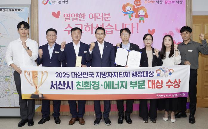 [뉴스다컴] 충남 서산시가 2025 대한민국 지방자치단체 행정대상에서 기초 지자체 친환경·에너지 부문 대상을 단독 수상하는 영예를 안았다.