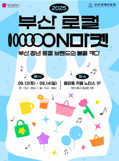 [뉴스다컴] 부산시와 부산경제진흥원은 13일부터 14일까지 이틀간 카페 '노티스'(중구 중앙동 소재)에서 '2025 부산 로컬 온(ON) 마켓'을 개최한다고 밝혔다.