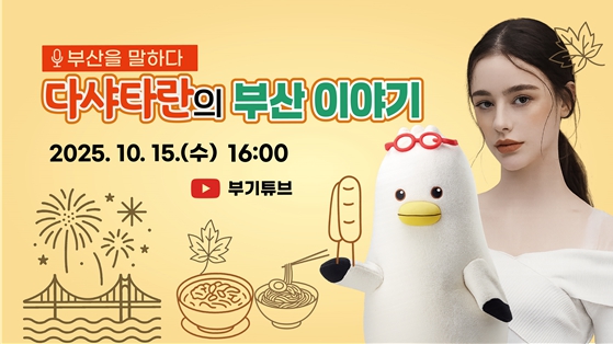 [뉴스다컴] 부산시는 오늘(15일) 오후 4시 시 소통캐릭터 '부기'의 유튜브채널(부기튜브)을 통해 '홍보대사 다샤 타란의 부산을 말하다' 라이브 방송을 개최한다고 밝혔다.