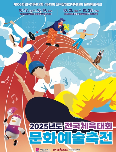 부산시는 오는 10월 17일부터 23일까지 6일간 해운대해수욕장 이벤트 광장과 부산사직운동장 야외광장 일원에서 '2025 전국(장애인)체전 문화예술축전 '웨이브 온! 부산!(Wave On! Busan!)''을 개최한다고 밝혔다.