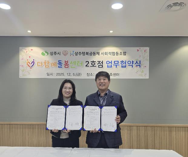 [뉴스다컴] 상주시는 12월 5일 상주시가족센터에서 상주시 다함께돌봄센터 2호점 위수탁 협약식을 개최하고, 수탁기관으로 상주행복공동체 사회적협동조합을 최종 선정하여 협약을 체결했다.