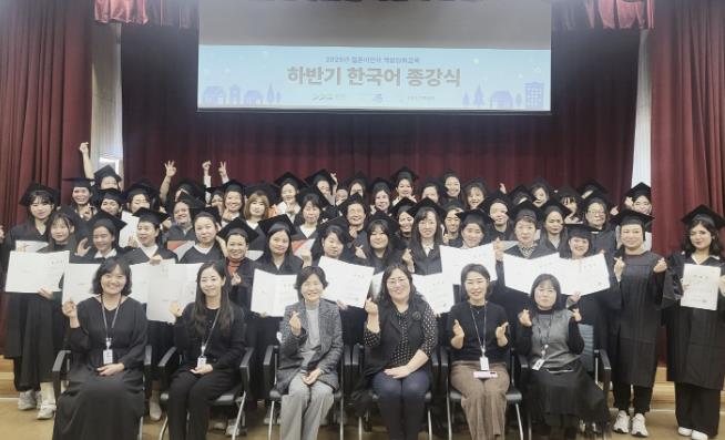 이번 종강식에는 한국어교육 프로그램에 참여한 결혼이민자 90여 명이 참석해, 한 학기 동안의 학습 성과를 공유하고 서로를 격려하는 시간을 가졌다.