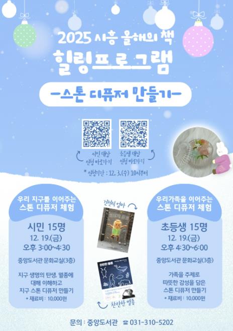 시흥시중앙도서관은 이번 힐링 프로그램을 시작으로, 시민들이 독서의 즐거움과 공동체적 소통의 가치를 체감할 수 있을 것으로 기대하고 있으며, 올해의 책 사업을 마무리한 뒤 2026년 ‘시흥 올해의 책’ 사업도 새롭게 추진할 계획이다.