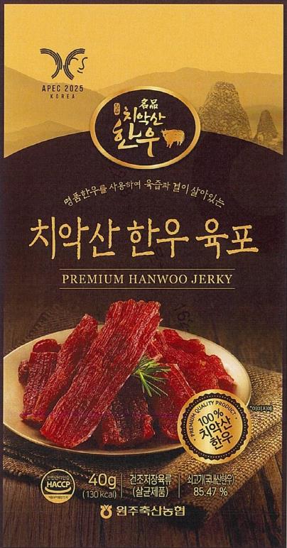 [뉴스다컴] 원주시 대표 한우 브랜드인 치악산한우 육포가 2025년 아시아태평양경제협력체(APEC) 정상회의 공식 협찬품으로 선정됐다.