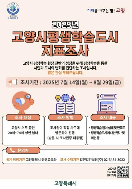▲ 2025년 고양시평생학습도시 지표조사 안내문 |