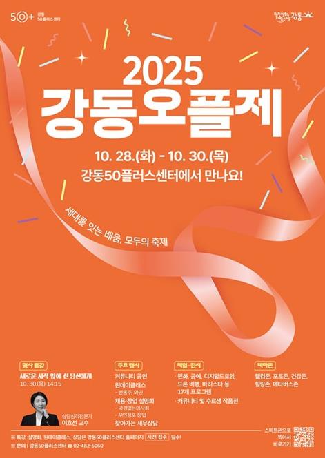 이수희 강동구청장은 “강동오플제는 중장년의 새로운 도전과 세대 간 배움을 이어주는 의미 있는 축제”라며, “앞으로도 배움의 즐거움을 나누는 행사가 지속될 수 있도록 적극 지원하겠다“고 말했다.