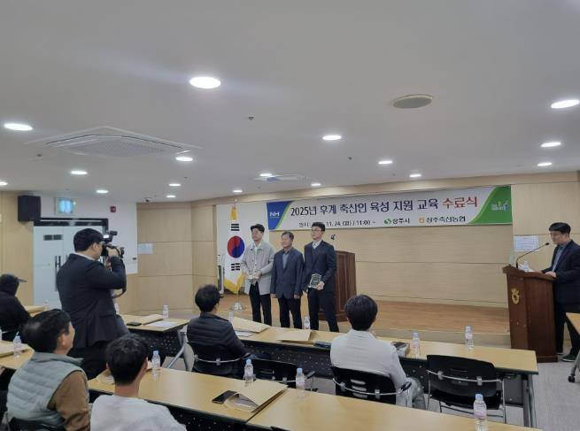 [뉴스다컴] 상주시는 11월 24일 상주축산농협 유통센터 대회의실에서 후계 축산인 육성 교육 수료생을 격려하는‘후계 축산인 육성 교육 수료식’을 성황리에 개최했다.