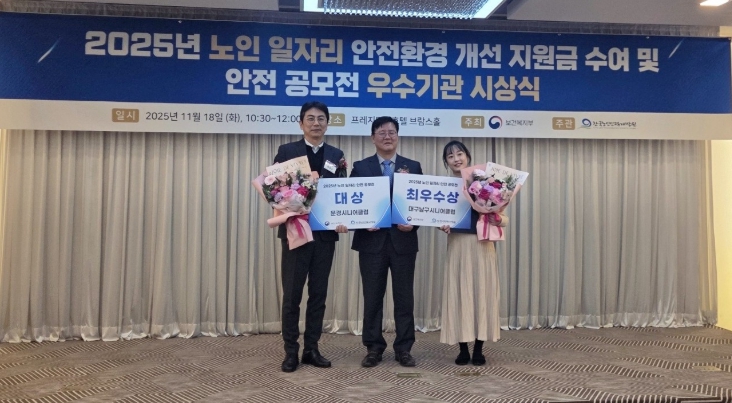 | ▲ ‘2025년 노인 일자리 안전 부문 우수사업단 및 안전 관련 정책 아이디어 공모전’ 대상 수상 |
