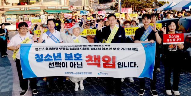 [뉴스다컴] 보령시는 지난 9일 여름철 청소년 보호를 위한 유해환경 감시단 집중단속 활동 발대식을 개최하고, 노을광장에서 만남의광장까지 가두행진 캠페인을 벌였다.
