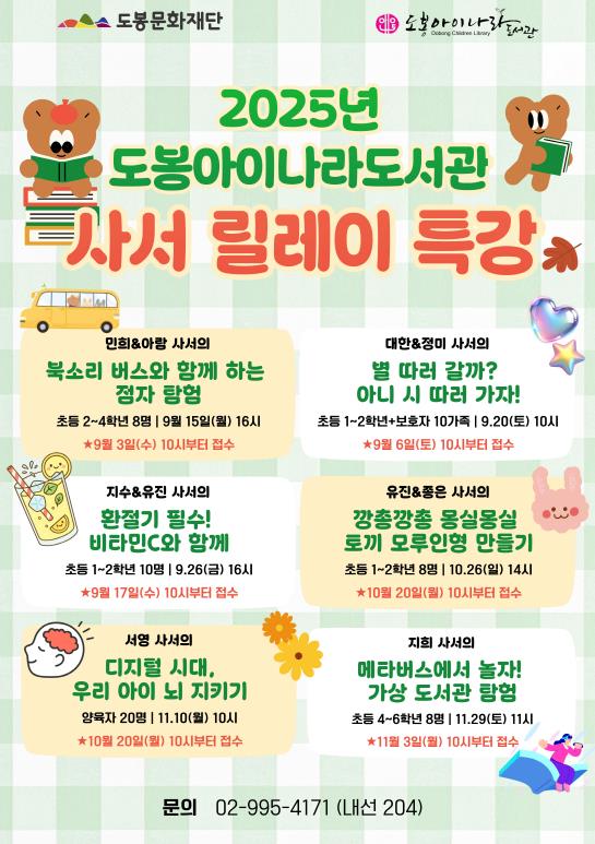▲ 2025년 도봉아이나라도서관 사서 릴레이 특강 안내 포스터 |