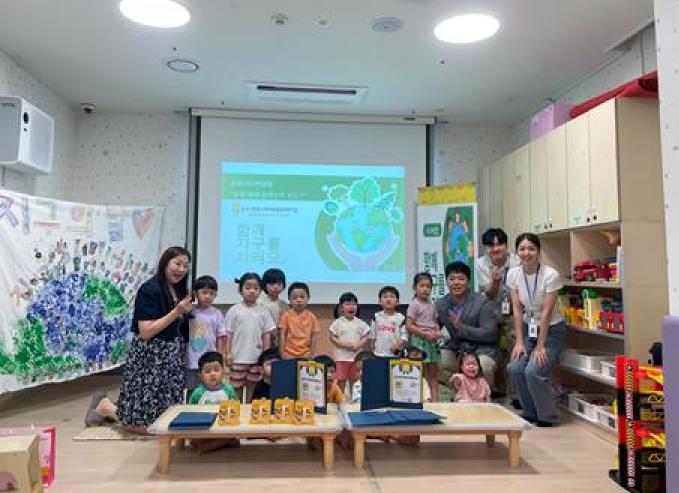 해당 어린이집의 아이들은 매주 가정에서 사용한 페트병을 수거해 어린이집에 가져오고 이를 시니어클럽 어르신들이 정리 및 수거하는 방식으로 자원 재활용 활동을 꾸준히 이어왔다. 이 과정에서 어르신들은 아이들에게 분리배출 방법을 친근하게 안내하며 자연스럽게 환경 감수성을 키워갔다. 이날 수여식에서는 활동에 꾸준히 참여한 아이들에게 상장이 전달됐고 행사 현장에는 어르신과 아이들이 서로를 격려하는 따뜻한 모습이 펼쳐졌다.