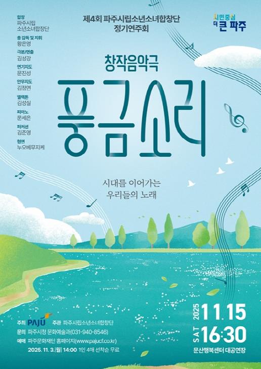 [뉴스다컴] 파주시는 오는 15일 16시 30분, 문산행복센터 대공연장에서 파주시립소년소녀합창단 제4회 정기연주회 ‘풍금소리’를 개최한다고 밝혔다.