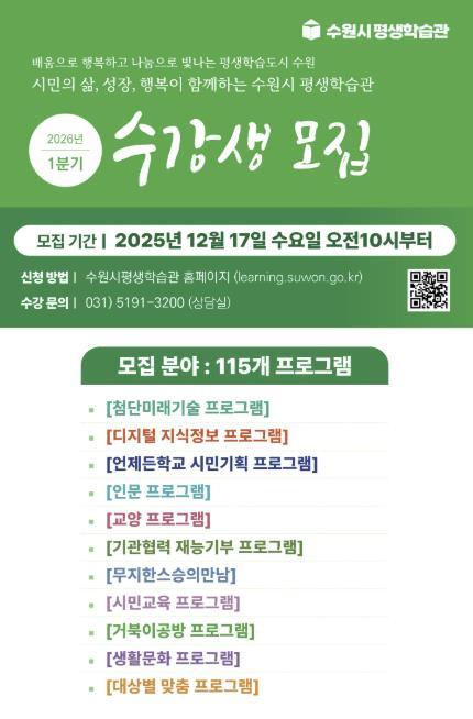 ▲ ‘수원시평생학습관 2026년 1분기 프로그램 수강생 모집’ 홍보물