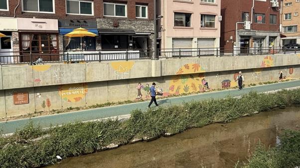 [뉴스다컴] 방학천(금강아미움 맞은편~방학교) 옹벽 약 360m 구간이 걷고 싶고 머무르고 싶은 산책길로 탈바꿈했다.