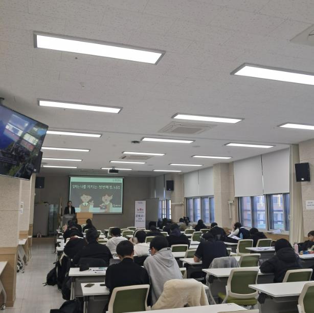 특강은 학생 참여형으로 진행됐으며 취업이나 아르바이트 과정에서 마주할 수 있는 실제 노동문제를 청소년 스스로 판단해보는 시간을 가졌다. 또한 ‘위험 구인정보’ 사례를 통해 안전한 구직 기준을 익히고, 현장에서 바로 활용할 수 있는 핵심 노동법 지식과 대응 전략을 안내했다.
