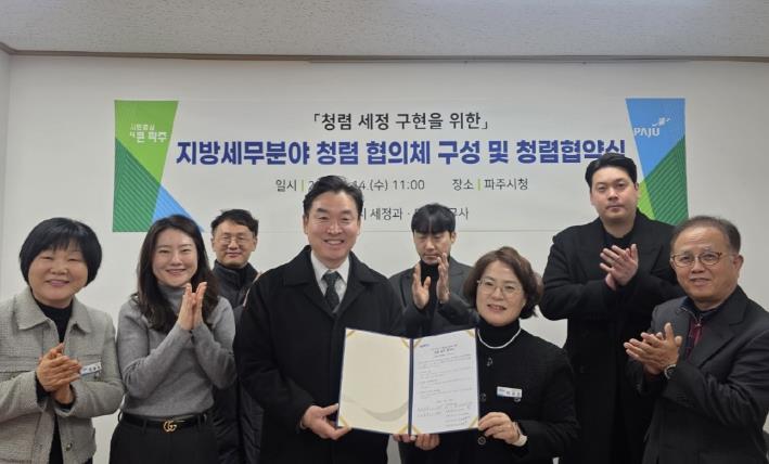[뉴스다컴] 파주시는 지난 14일 파주지역세무사회(마을세무사)와 함께 청렴 문화의 정착과 확산을 위한 민관 청렴협의체를 구성하고, 청렴 실천을 위한 협약을 체결했다고 밝혔다.