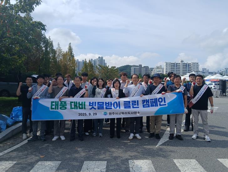[뉴스다컴] 원주시상하수도사업소는 쾌적한 도시환경 조성과 건강한 수생태계 보전을 위해 지난 29일 소장을 비롯한 직원 60여 명과 함께 태풍 대비 ‘빗물받이 클린’ 캠페인을 전개하고, 환경부에 하수 중점관리지역 지정을 신청했다.