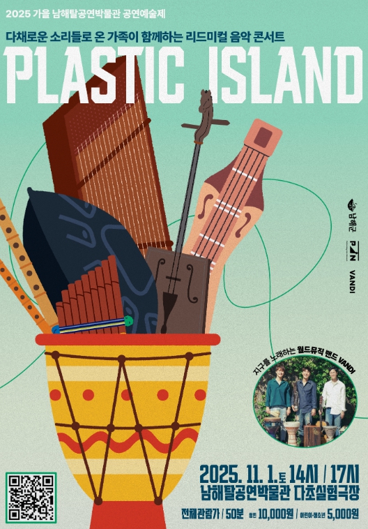 [뉴스다컴] 남해탈공연박물관(이동면 남해대로 2412)은 오는 11월 1일, 월드뮤직 콘서트 ‘플라스틱 아일랜드 Plastic Island’를 개최한다.