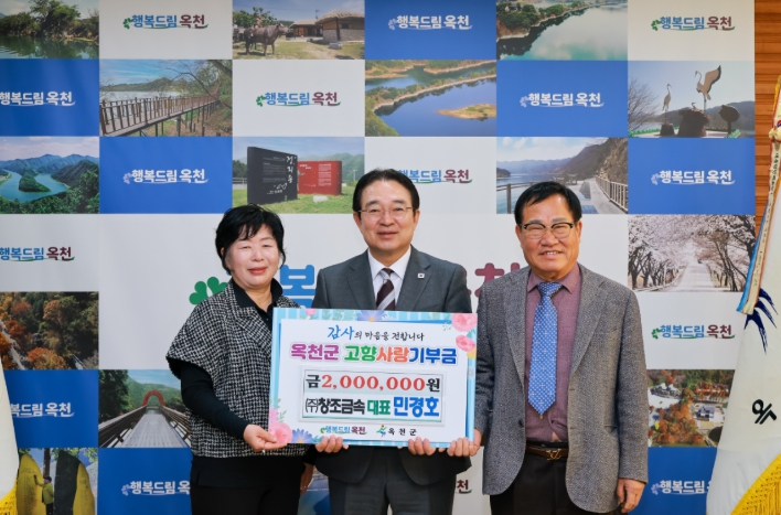 [뉴스다컴] 옥천군 관내 기업 ㈜창조금속 민경호 대표가 지난해와 마찬가지로 고향사랑기부금 200만 원을 기탁하며 옥천의 발전을 응원했다.