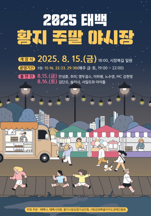태백시 관계자는 “공연·체험·먹거리가 어우러진 한여름밤 축제인 황지야시장이 시민과 관광객 모두에게 즐거움을 주고, 지역 상권이 활력을 되찾는 계기가 되길 바란다”고 전했다.
