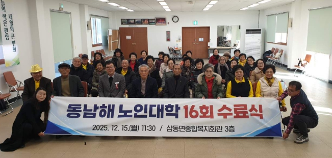 [뉴스다컴] 동남해노인대학이 15일 삼동면종합복지회관 3층 회의실에서 제16회 수료식을 개최했다.