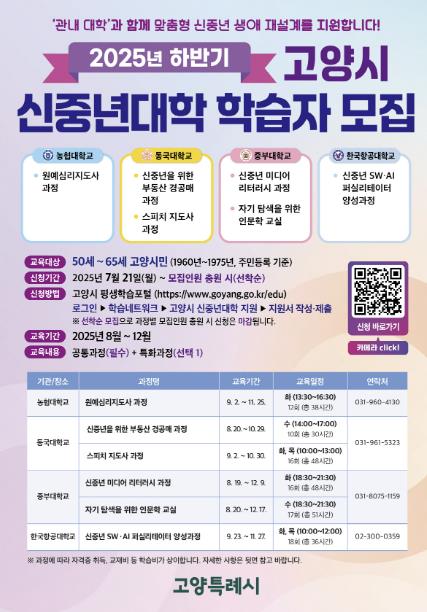 ▲ 2025년 하반기 고양시 신중년대학 학습자 모집 안내문 |