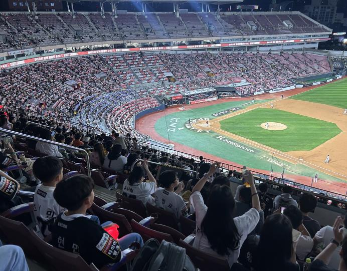 ▲ 수원시 드림스타트 아동 및 가족이 kt위즈 야구 경기를 관람하고 있다. |