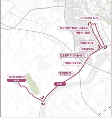 61번 노선의 한국영상대학교 탑승인원이 소폭 줄어든 것은 611번 노선의 신설과 관련이 있는 것으로 나타났다. 611번은 최초 신설된 3~6월 기준으로 총 15,033명이 이용했는데, 그 중 64%가 한국영상대에서 탑승했고, 전체 이용인원의 34.3%가 학생들의 수업 완료시간대인 16~18시에 집중된 것으로 나타나, 한국영상대학교 학생들의 통학 수요에 대응하여 기존 61번의 혼잡도를 낮추는데 기여한 것으로 나타났다.
