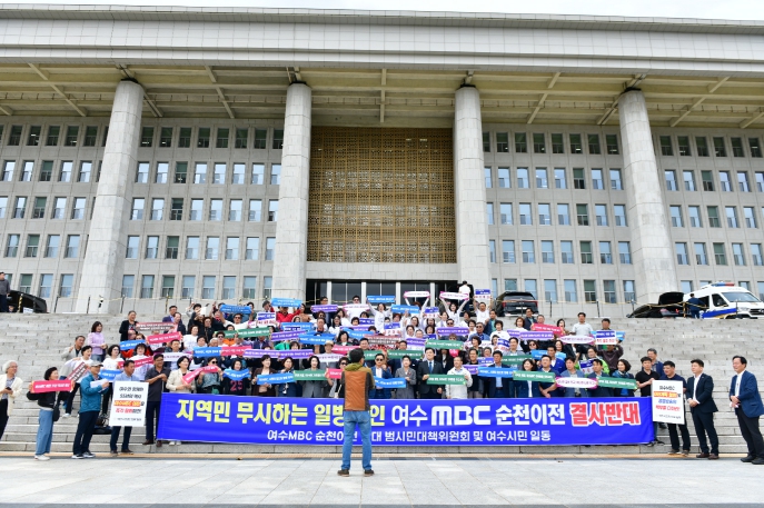 [뉴스다컴] 여수시의회는 10월 14일 MBC본사와 국회에 항의 방문하며 여수MBC 순천 이전 철회를 강력히 촉구했다.