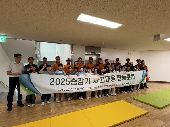 [뉴스다컴] 군산시는 한국승강기안전공단, 군산소방서, 관리업체가 함께 참여한 가운데 미장초등학교 학생들 30여 명을 대상으로‘2025년도 승강기 합동훈련’을 실시했다.