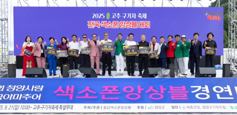 [뉴스다컴] 2025 청양고추구기자축제 무대에서 지난 20일과 21일 열린 제6회 청양사랑 전국아마추어색소폰앙상블경연대회가 전국 각지에서 모인 아마추어 연주자들이 열띤 경연을 펼친 가운데 성황리에 마무리됐다.