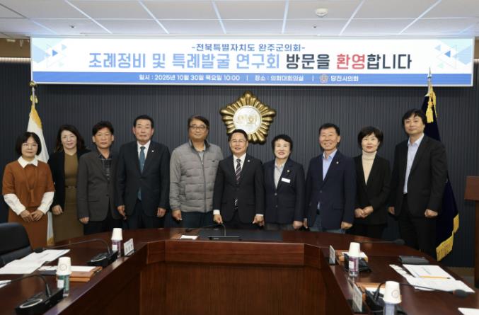 [뉴스다컴] 당진시의회는 10월 30일 완주군의회 의원 연구단체인‘조례 정비 및 특례 발굴 연구회’와 간담회를 갖고, 입법영향평가 제도 운영 경험과 노하우를 공유하는 시간을 가졌다.