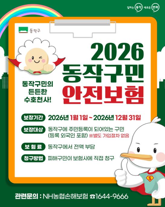 [뉴스다컴] 동작구는 2026년부터 ‘구민안전보험’을 확대 운영한다고 19일 밝혔다.
