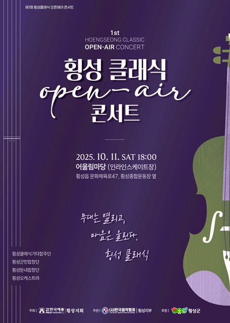 [뉴스다컴] 횡성군민에게 깊은 음악적 감동을 선사할 ‘제1회 횡성 클래식 오픈에어 콘서트’가 오는 11일 오후 6시, 횡성 어울림마당(인라인스케이트장)에서 열린다.