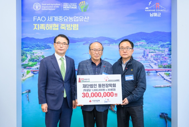 [뉴스다컴] 남해군은 지난 2일 재단법인 동헌장학회(회장 강진용)가 저소득층 학생들을 위한 장학금 3천만원을 기탁했다고 밝혔다.