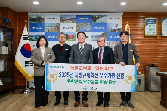 [뉴스다컴] 옥천군은 행정안전부가 주관하는‘2025년 지방규제혁신 추진성과 평가’에서 4년 연속 우수기관으로 선정돼 특별교부세 1억 원을 확보하는 성과를 거두었다고 밝혔다.