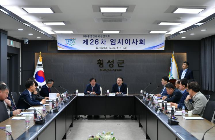 [뉴스다컴] 횡성군의 출연기관인 (재)횡성인재육성장학회는 횡성군청 2층 회의실에서 제26차 임시이사회를 열고 2026년도 주요 사업계획과 예산(안)을 심의·의결했다.