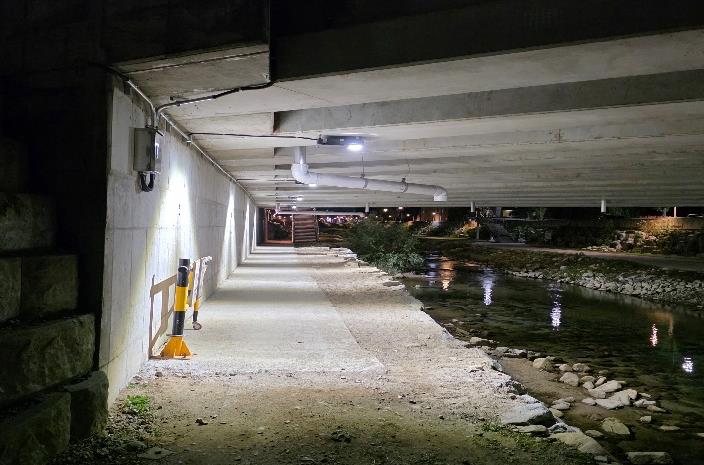 시는 태학교를 시작으로 대평교까지 총 5.8㎞ 구간 개선을 마무리했다. 하천 산책로와 교량 하부를 전수 조사해, 13개 교량에 조명 45개를 신설·정비하고 조도를 개선함으로써 지역 주민의 활용도를 높였다.