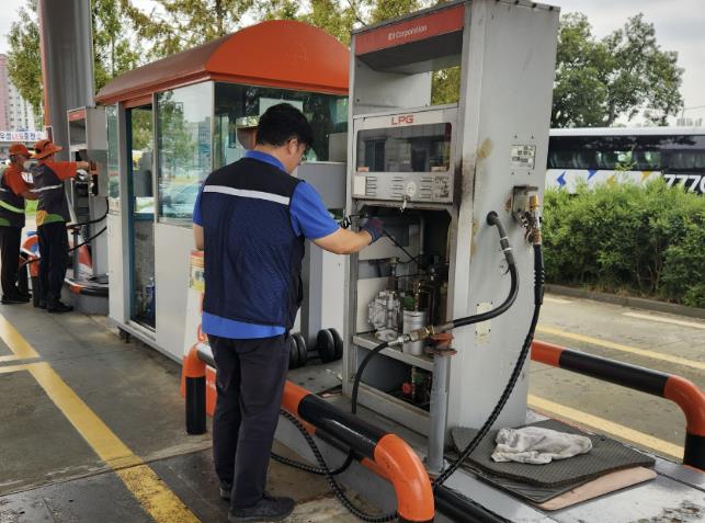 ▲ 한국가스안전공사 관계자가 LPG충전소에서 가스 누출을 점검하고 있다.