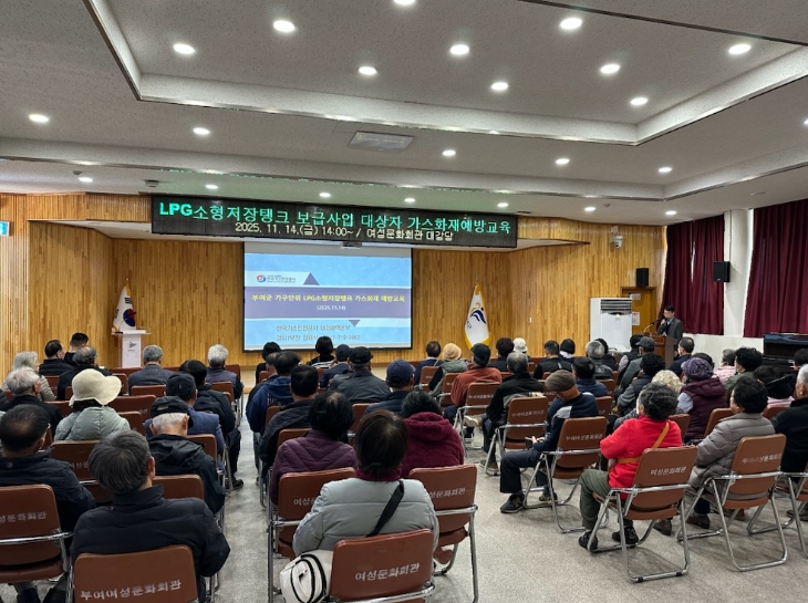 [뉴스다컴] 부여군이 전국 최초로 실시한‘가구단위 LPG소형저장탱크 지원사업’ 참여자를 대상으로 여성문화회관 대강당에서 가스 화재 예방 교육을 진행했다고 18일 밝혔다.