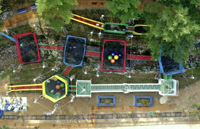 주요 시설은 △트램폴린 4개소 △볼파크 4개소 △해먹네트존 2개소 △키즈존 △네트트리하우스 △어드벤처코스 등 10여 종으로 아이들이 숲속에서 신체활동과 모험을 즐길 수 있도록 구성돼 있으며, 부모 쉼터, 데크쉼터, 퍼걸러, 게비온 의자 등 편의시설도 함께 마련해 가족 모두가 편안하고 즐겁게 머물 수 있는 공간으로 조성됐다.