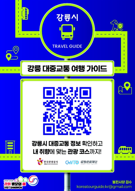 [뉴스다컴] 한국관광공사와 강원관광재단은 11월 17일 , 강릉을 방문하는 도보 관광객을 위한 강릉시 대중교통 관광 가이드 플랫폼을 공식 출시했다고 밝혔다.